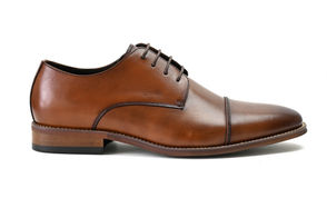 Crafted from rich tan Full Grain burnish leather, this derby boasts a sophisticated pattern and timeless elegance.