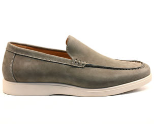 A modern dress-casual loafer with a soft nubuck leather upper and clean moc-toe styling. Full leather linings provide comfort and breathability, while the lightweight sole adds an easy, relaxed feel. Versatile and understated, it pairs effortlessly with chinos, tailored separates, and refined weekend looks.